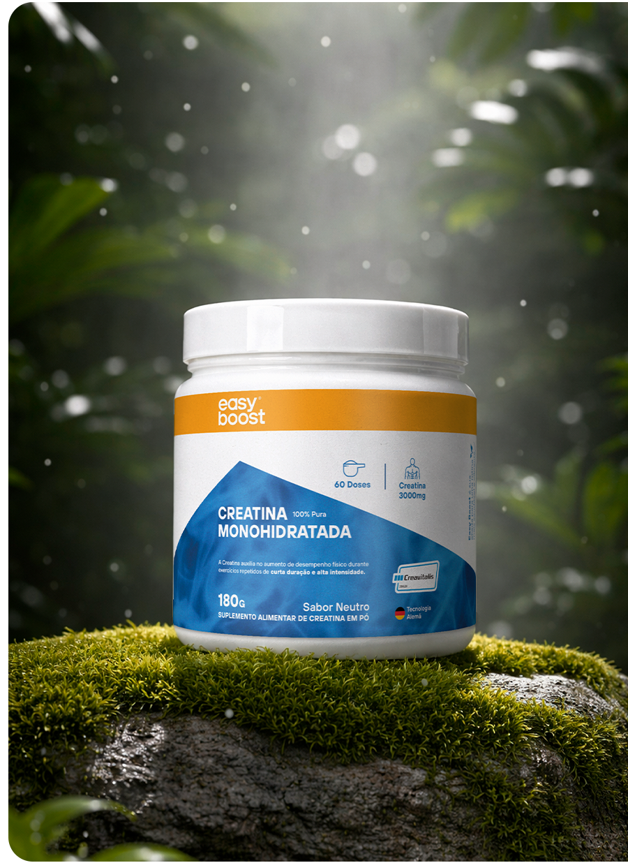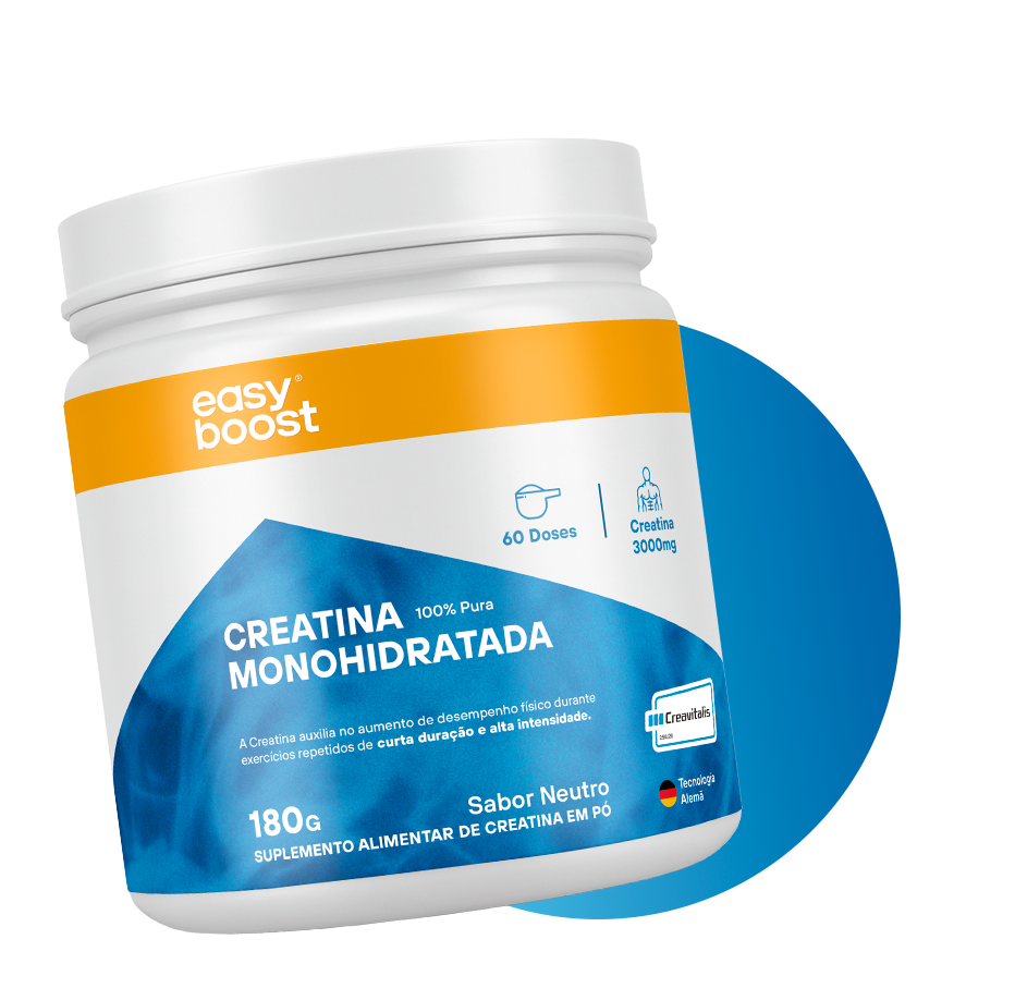 A creatina é uma substância naturalmente produzida pelo organismo e também obtida por meio da alimentação, principalmente a partir de alimentos de origem animal. Ela é armazenada principalmente nos músculos, onde participa de processos relacionados ao metabolismo energético, especialmente em situações de maior demanda. No organismo, a creatina atua no sistema responsável por fornecer energia rápida para as células, por meio da regeneração do ATP, que é a principal molécula de energia utilizada pelo corpo. Esse mecanismo é especialmente importante em atividades que exigem esforço intenso por curtos períodos de tempo, como movimentos explosivos, sprints e exercícios de força. Por esse motivo, a creatina auxilia no aumento do desempenho físico durante exercícios repetidos de curta duração e alta intensidade. A suplementação de creatina, quando associada a uma alimentação equilibrada, boa hidratação e rotina ativa, pode ser uma forma prática de complementar a ingestão desse nutriente e manter sua disponibilidade no organismo ao longo do tempo.