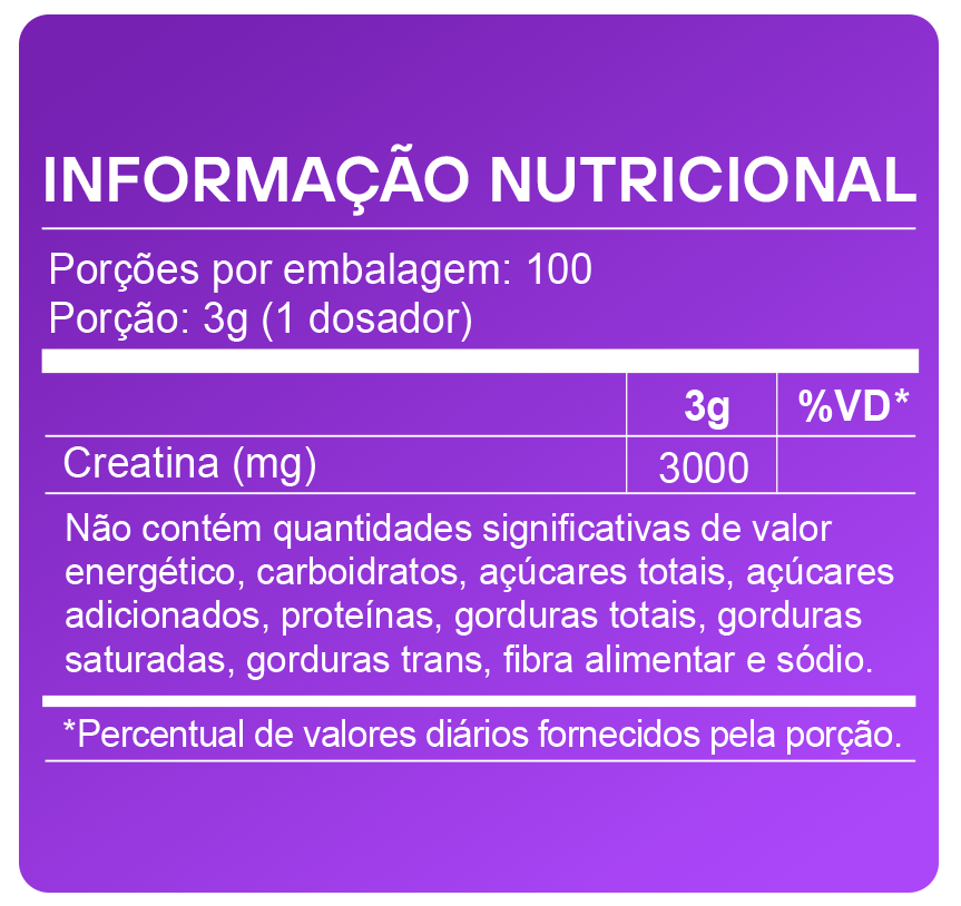A creatina é reconhecida pela ciência por sua participação no metabolismo energético, auxiliando no fornecimento de energia rápida para os músculos durante atividades de alta intensidade e curta duração. O termo “monohidratada” indica que a creatina está ligada a uma molécula de água, sendo essa a forma mais estudada, segura e bem tolerada de consumo. Além disso, a creatina monohidratada apresenta boa dissolução e aproveitamento pelo organismo, o que favorece sua utilização nos processos metabólicos e contribui para que desempenhe suas funções de forma eficiente no corpo.