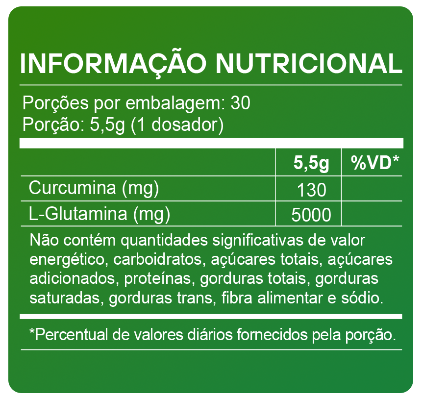Com sabor refrescante de limão e preparo rápido, a fórmula de Glutamina + Curcumina pode ser facilmente incluída na rotina como um verdadeiro shot diário de suplementação. Basta diluir em água e consumir de forma prática, sem complicações, facilitando a constância no uso. Ter um suplemento que se encaixa facilmente no dia a dia faz toda a diferença para manter a regularidade, fator essencial em qualquer rotina de suplementação. Esse formato é ideal para quem busca praticidade, sem abrir mão de ingredientes de qualidade e de uma composição bem equilibrada.