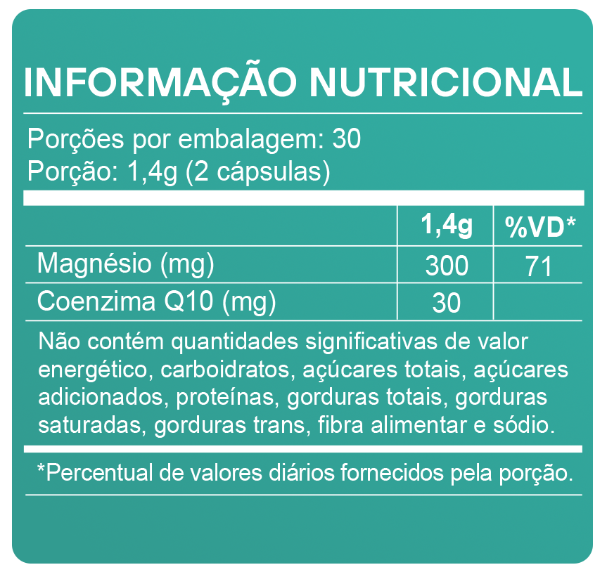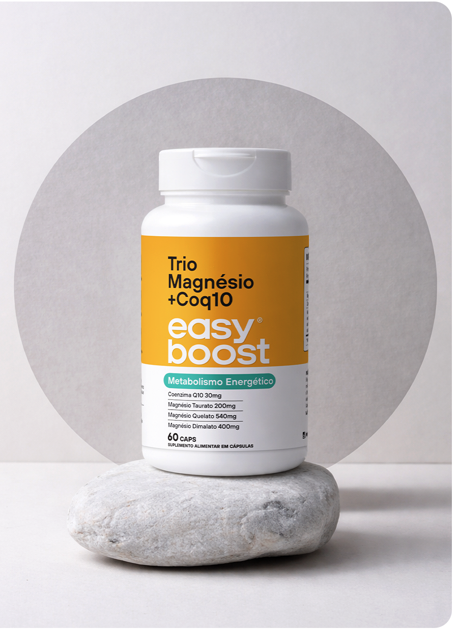 O Trio Magnésio + Coq10 reúne magnésio taurato, magnésio quelato e magnésio dimalato, três formas amplamente utilizadas em suplementação nutricional. Cada uma possui características próprias, e a combinação permite uma abordagem mais completa de suplementação do mineral, atendendo diferentes vias de utilização no organismo em um único produto, com mais praticidade no dia a dia.