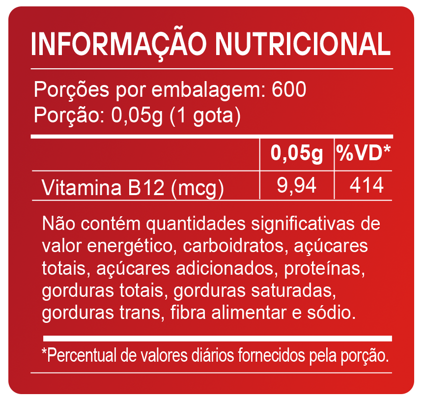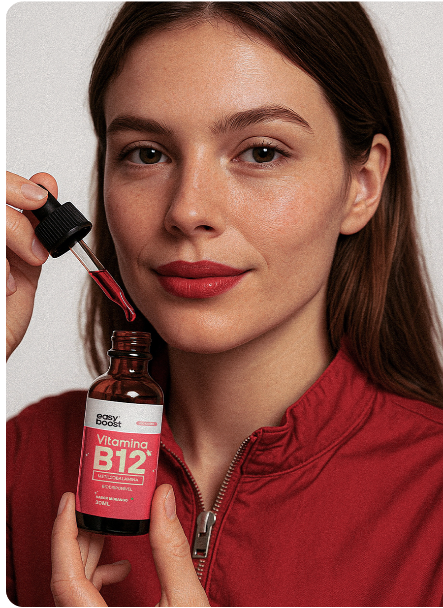 A vitamina B12 atua em diversas funções importantes do organismo, auxiliando no funcionamento do sistema imunológico, no metabolismo da homocisteína e no processo de divisão celular. Também participa do metabolismo de carboidratos, proteínas e gorduras, contribuindo para a produção de energia, além de auxiliar na formação das células vermelhas do sangue. Por isso, a vitamina B12 é essencial para a manutenção da saúde, do metabolismo e da disposição no dia a dia.